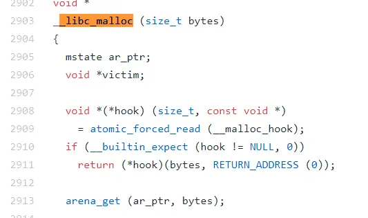 _malloc_hook함수란 내부적으로 malloc 코드가 동작할때 초반에 체킹되는 로직으로, 일반적으로 개발자를 위한 디버깅함수라고 알면된다. 보통은 해당 함수의 반환값이 널로 되어있어서 정상적인 malloc이 호출된다 (아래 코드부분)