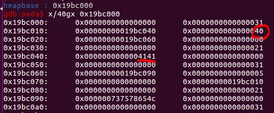 위 상황이 방금 말한 상황이다. 초기에 bmw 는 3바이트 이기 때문에 size부분에 3이 들어가 있었지만, remodel() 함수에서 0x40크기의 'A를 입력했기 떄문에, 초기 3바이트 만큼(널포함 3바이트)만 실제 모델명 위치에 들어가고, size에는 0x40이 들어가게 된다.