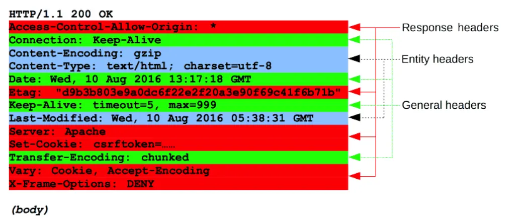다양한 종류의 response 헤더가 있는데, 이들은 다음과 같이 몇몇 그룹으로 나눌수 있다.