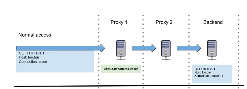 현재 요청을 처리하는 프록시가 처리하고 사용하도록 설계된 헤더이다. 프록시가 사용되면 일반 헤더는 추가 정보를 삽입하여 hop 별로 처리할 사용자 정의 헤더 세트를 정의할 수 있다.