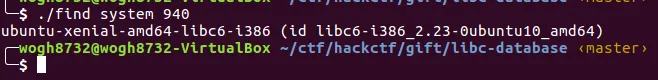 system함수를 주기 때문에 libc_base를 구하여 오프셋을 이용해 "/bin/sh" 의 주소를 찾고 ROP를 진행하면 될 것이다. 매우 간단한 문제이다. libc_database를 이용하여 libc의 버전을 확인해보자