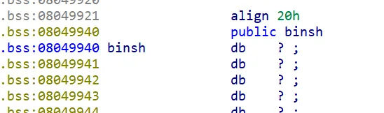 하지만 자세히 보면 system 함수는 실제 함수의 주소이지만, binsh는 .bss 영역에 저장된 전역변수의 이름이 binsh이다. 해당 주소를 rop의 인자로 넣으면 아무 소용이 없다. 이를 염두해야한다