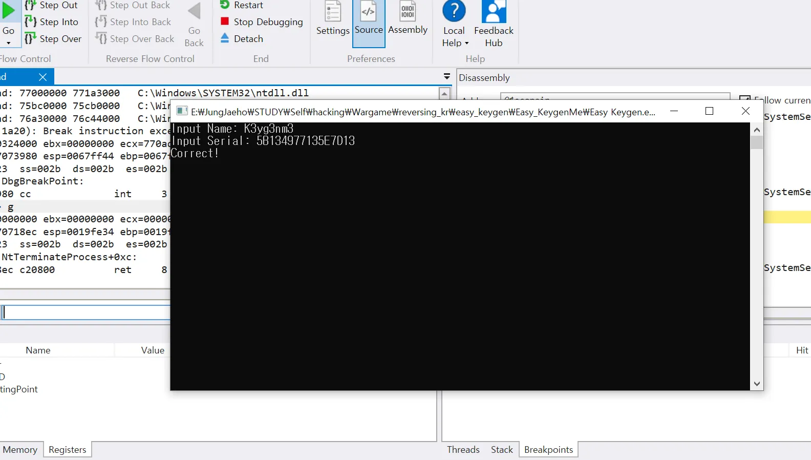 이번엔 windbg로 풀었다. 리눅스에서만 해서 그런지 이게 훨편하다..
