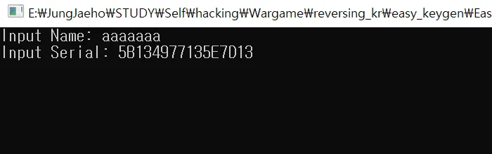 처음 이름을 입력하면 input에 저장이 되고 이를 v6[i]와 xor 연산하여 v11에 저장한다. 그리고 시리얼 키를 입력하여 연산되 v11과 비교를 한다. 역연산을 이용하여 input값을 알아내면 될것이다