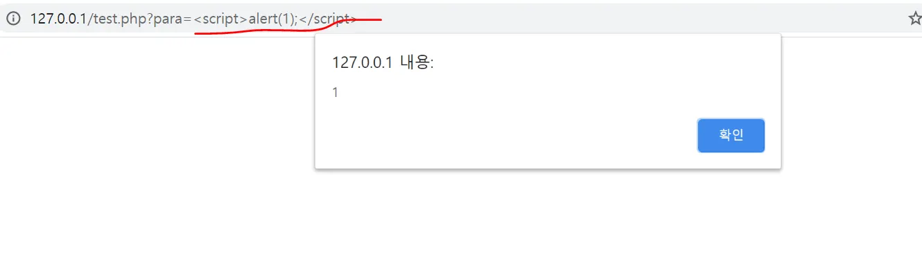 저렇게 입력한 값이 url 파라미터로 넘어가고, 입력한 문자열을 그대로 다시 보여준다. 그렇다면 저기 검색창에 스크립트 태그를 넣거나 아니면 url에 바로 스크립트 태그를 넣었을때 alert()이 뜬다면, 이는 xss 공격에 성공한 거고 이걸 바로 reflected xss라고 한다.