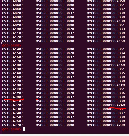 대부분은 next 포인터의 하위 한바이트를 0x00으로 만들면, 이전 노드의 mem 주소를 가리키게 되지만, id=6을 보면, notes의 내용이 가리키는 주소로 변경가능하다. 그렇다면, 6번 노트의 next 포인터를 하위 한바이트를 조져서 0x..200을 가리키게 하자.