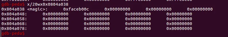 buf 변수에 입력을 받는다. 그리고 출력을 해주는데, 서식문자가 없기때문에 여기서 fsb가 터질 것이다. 그리고 magic값이 218인지, 0xfaceb00c인지 비교한다. 둘다 아니면 puts를 호출한다. 여기서 알아야 할 것은 magic 변수는 bss 영역에 있기 때문에 정상적으로는 건들수 없다