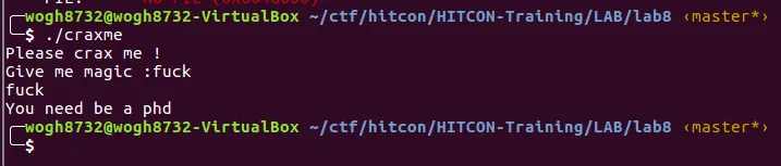 바이너리를 실행시켜보면 자기를 크랙미하라고 한다. 매직을 입력받는다.