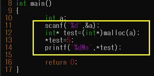 위 사진을 보면 사용자의 입력을 받는 만큼의 사이즈로 malloc을 진행하고 있다. 이부분이 바로 런타임시에 사용자의 입력에 따라서 사이즈가 달라지므로 컴파일시에는 사이즈를 알수 없다는 소리이다.