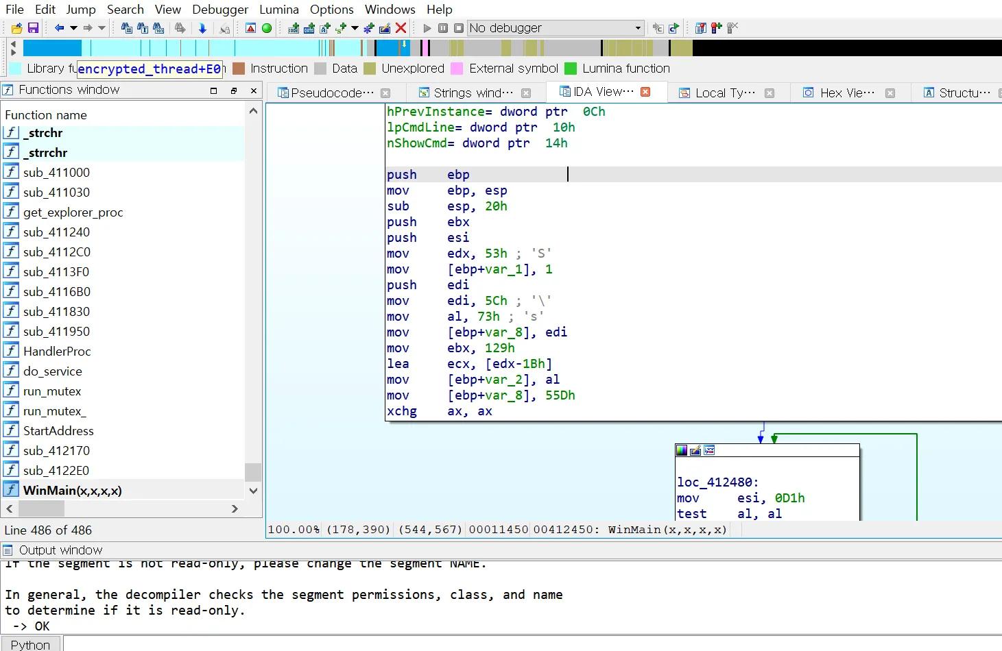 v13 = CreateThread(0, 0, (LPTHREAD_START_ROUTINE)encrypted_thread, v17, 0, 0);