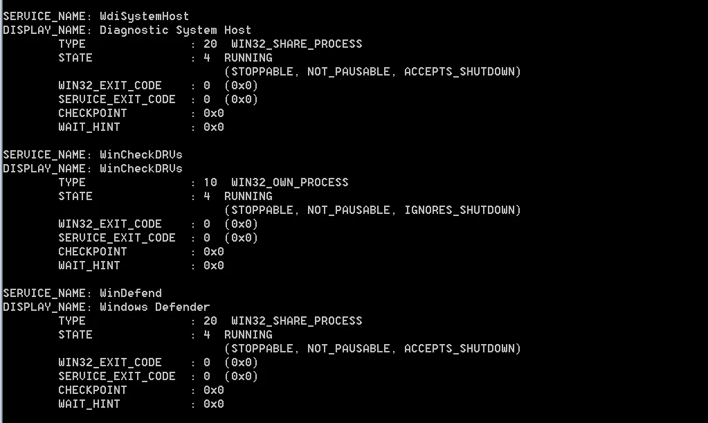 악성코드가 실행되면 내부에서 WinCheckDRVs 라는 이름의 서비스를 등록한뒤 해당 서비스를 실행시킨다. 서비스가 정상적으로 동작되면 몇초 후 암호화된 파일들과 키파일 그리고 랜섬노트가 생성된다. 윈도우 Service로 등록되었기 때문에 백그라운드에서 지속적으로 파일들을 암호화한다