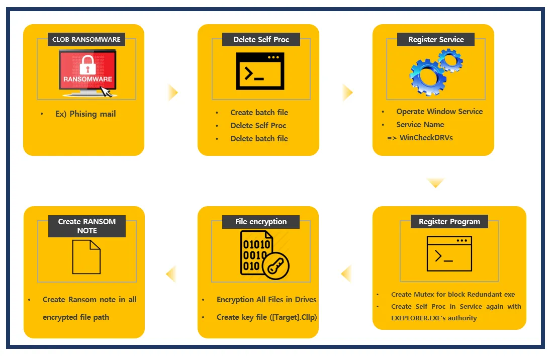 11월 22일 E사의 오프라인 점포 23곳이 랜섬웨어 감염으로 긴급 휴점에 돌입했다. 유포경로에 대한 정보는 아직 밝혀진게 없으며 최근에 발생한 이슈임에 따라, 랜섬웨어의 동작과정을 자세하게 분석해볼 것이다