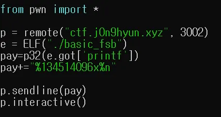 정리를 하자면 printf got 주소 + %"flag 함수 주소크기"x%n