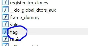 flag라는 함수를 확인 할 수 있었고, 해당 함수에서 시스템 함수를 실행 시킬수 있다는 것을 확인 할 수 있다.