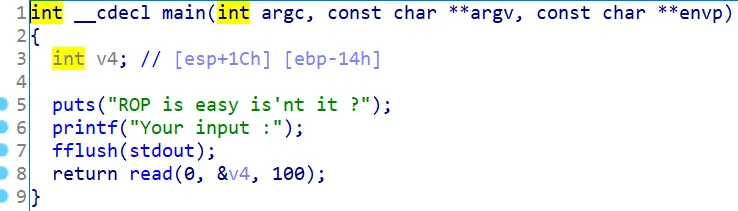 ROP가 쉽지 않냐고 물어본다. 그리고 입력을 받는다. 끝이다