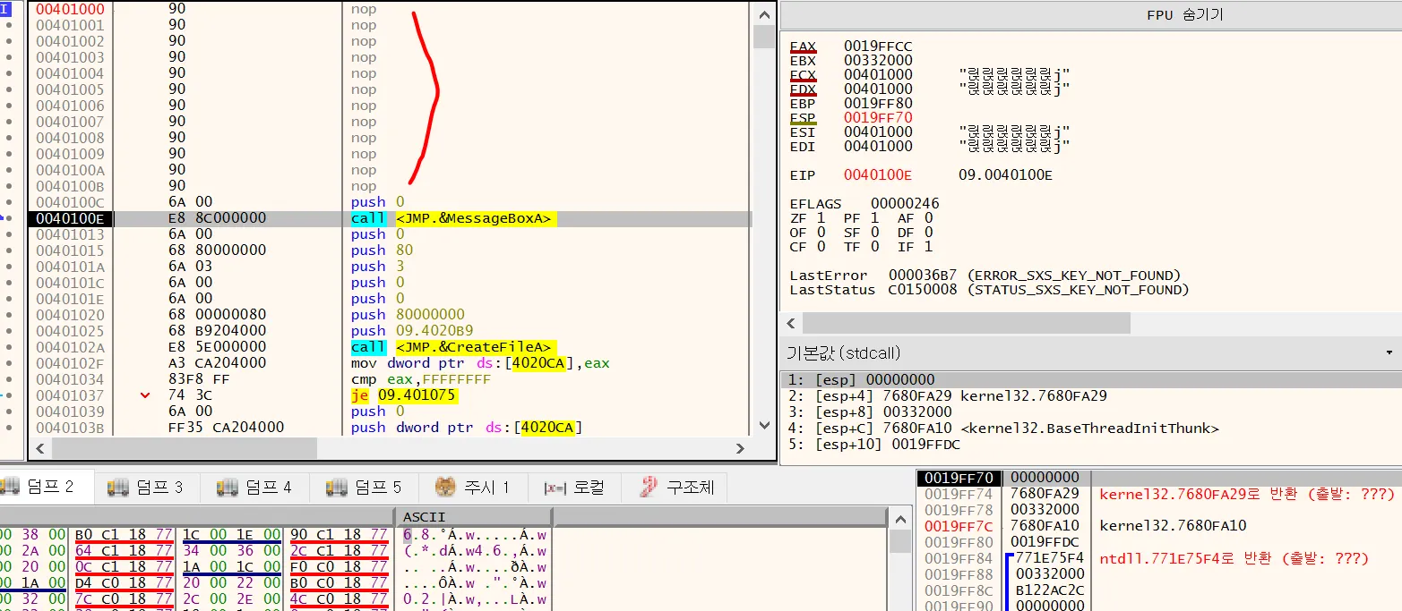 msg 박스를 호출하는데 인자가 이상하다. 저 인자를 넣는 Instruction을 훔쳐갔나보다.