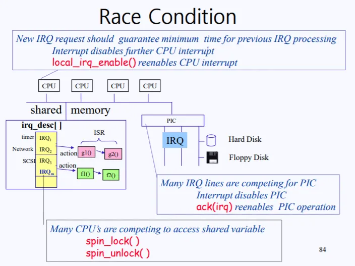 이러한 do_iqr() 함수 로직은 많은 민폐를 끼치게 된다. 여기서 말하는 민폐는 요청에 대한 ACK가 오기 전까지 PIC는 block이되고, 또 IRQ 라인은 공유 메모리로 사용되기 때문에 lock이걸리면 다른 CPU는 사용하지 못하는 것들을 말한다.