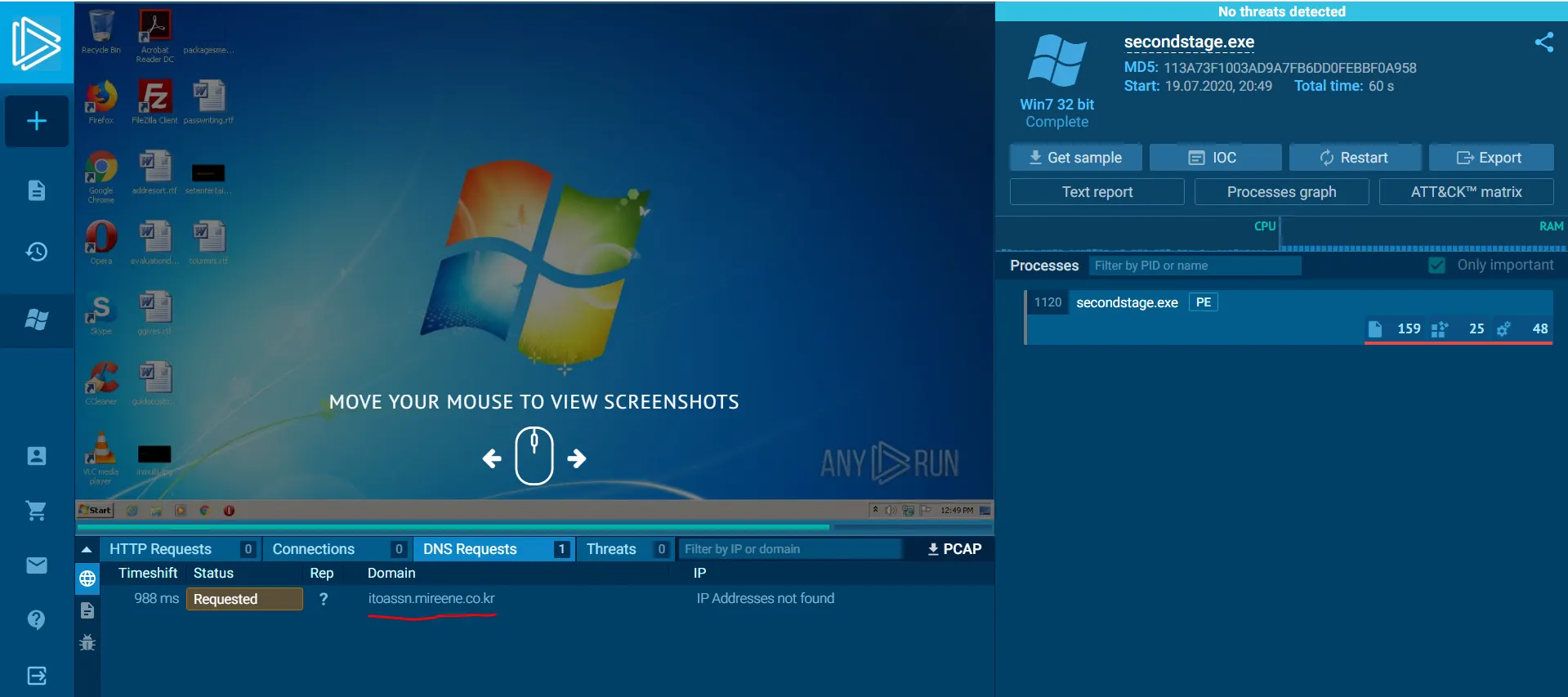 따라서 Any Run Sandbox를 이용해서 현재 추가적으로 확인할 수 있는 정보를 확인해보자.