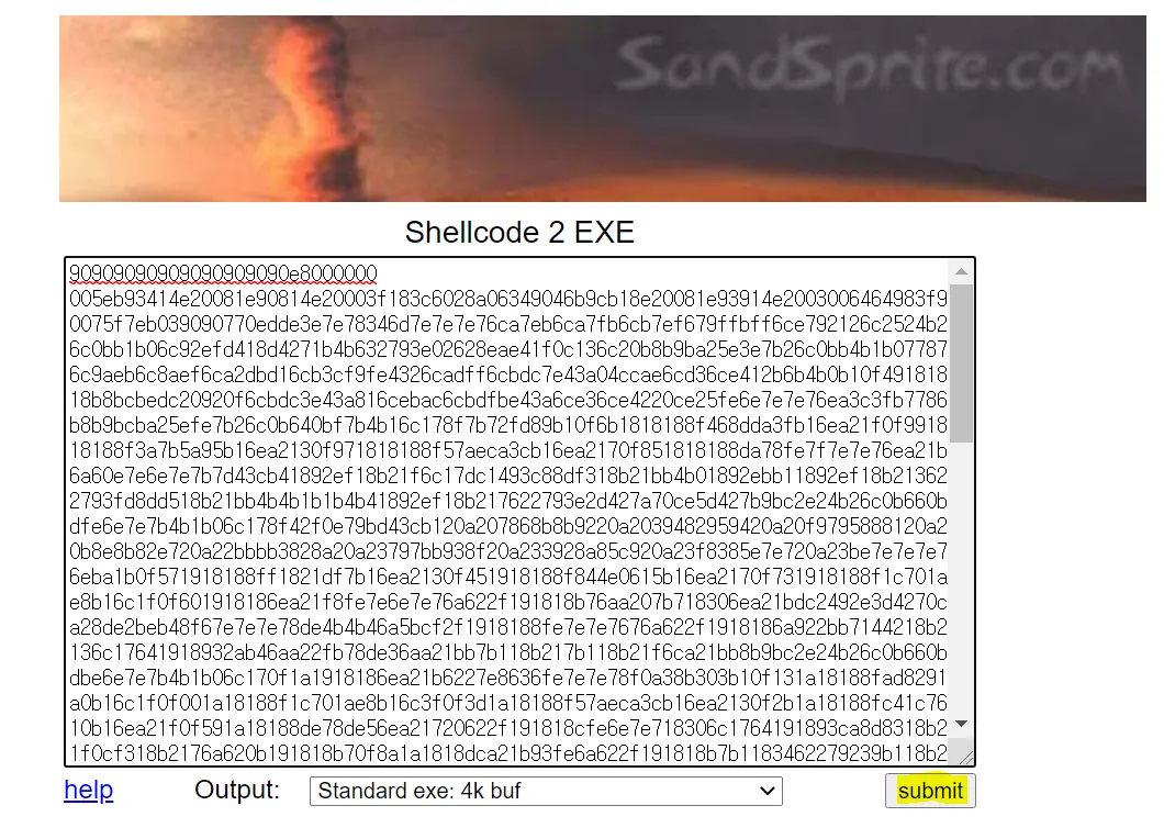 아래 사이트는 쉘코드를 exe 파일로 변환시켜주는 사이트이다.