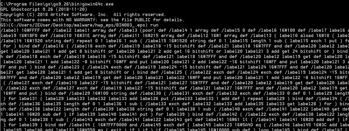 악성 HWP 문서의 상당수가 EPS를 이용하여 악성행위를 수행한다.