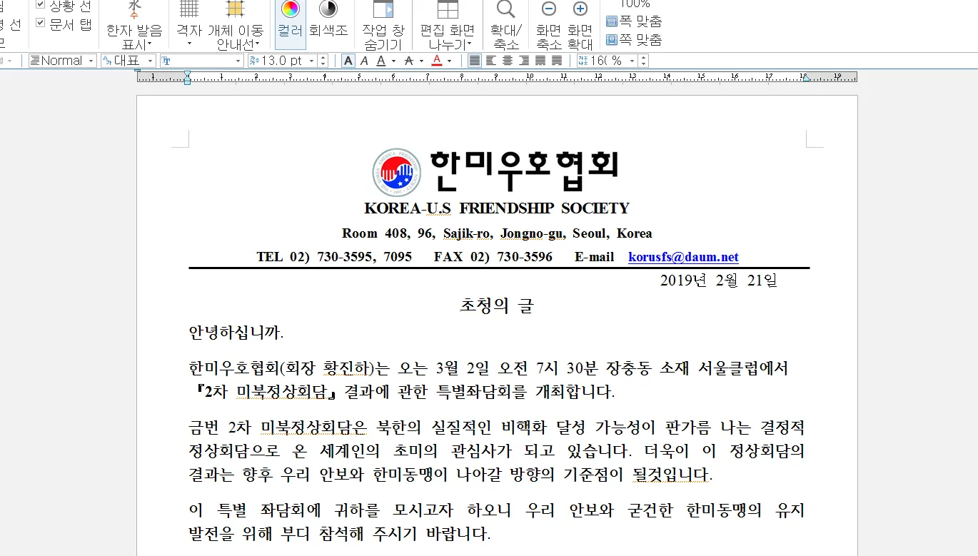 그림 1. 한글 문서 실행결과