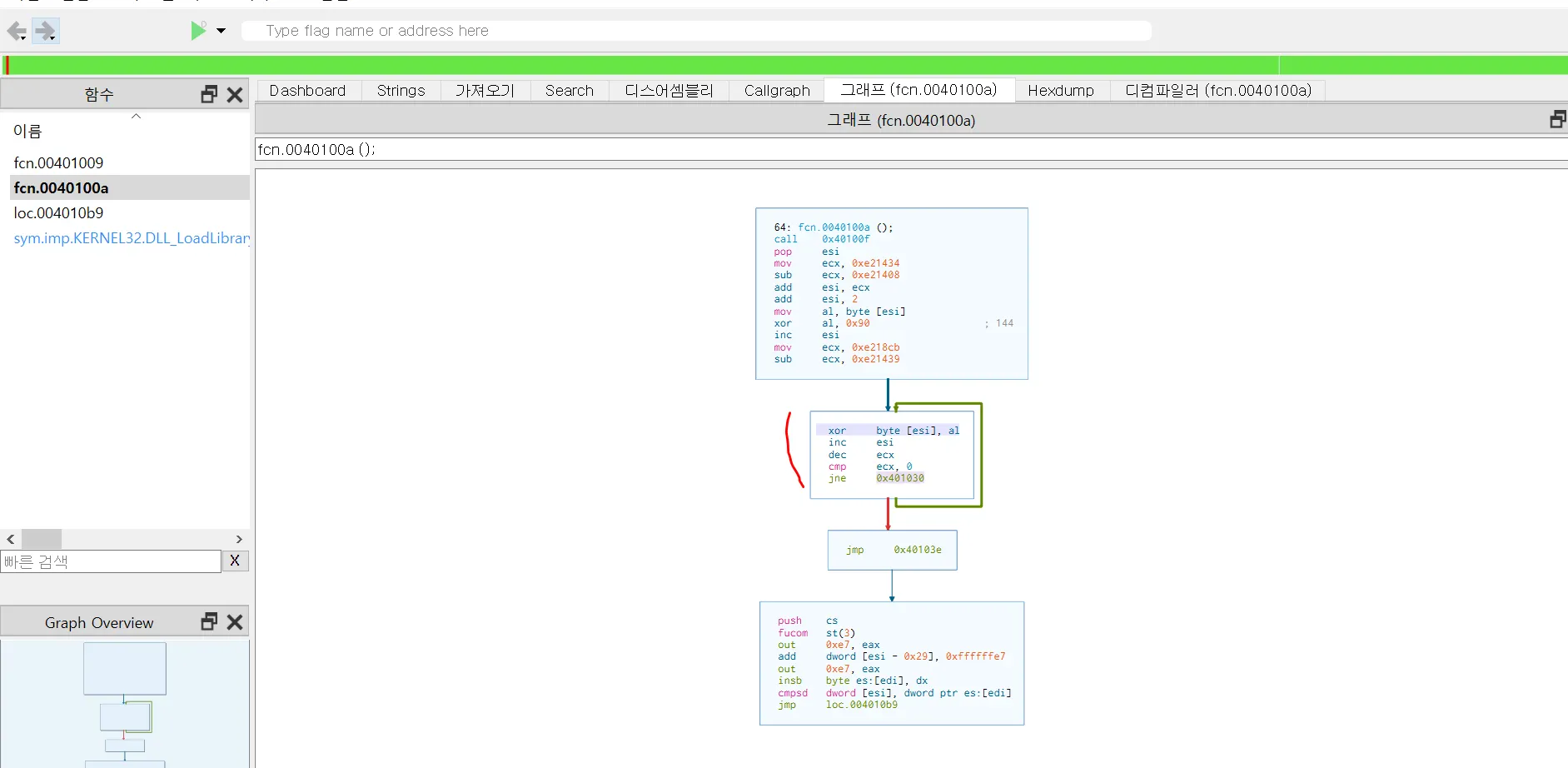 그림9. Cutter를 이용한 shellcode의 Graph View