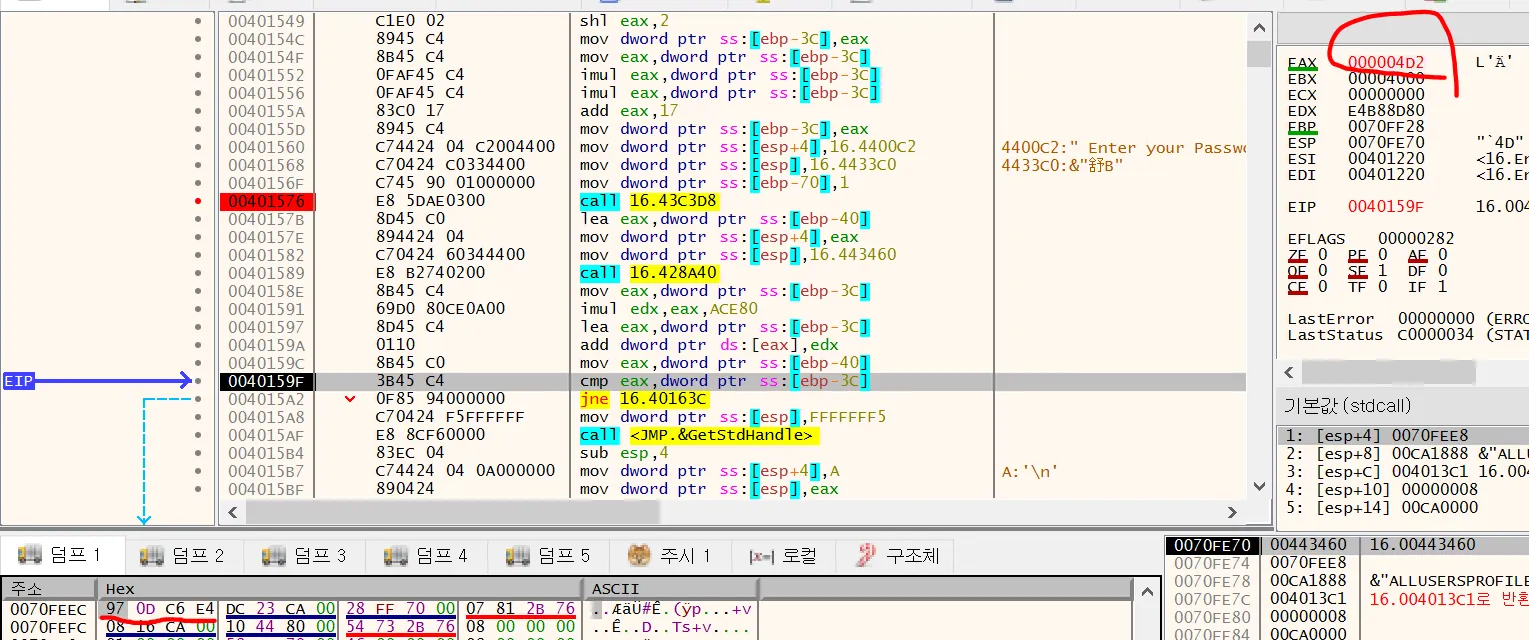 CodeEngn ⇒ 0xE4C60D97 로 생성됨. 이를 10진수로 입력하면 끝이다