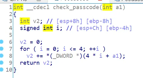 for문을 보면 al값에 4*i 만큼 더하고 다시 4바이트 포인터로 형변환 값을 v2에 더하게 된다