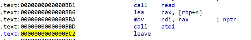 read_int32() 함수의 leave부분의 코드영역이다. 쨋든 이게 중요한게 아니라, buf 변수가 초기화 되지 않은 취약점을 이용하여 해당 주소를 leak할수 있다.