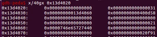 2번쨰 반복에서 0x20 사이즈 를 입력하면 0x30 사이즈 청크가 할당될것이고, 이는 아까 말한 chat 가 가리키는 청크를 재할당 받는다. 그 후에 gift 입력시 더미+8, win 주소 이렇게 입력하면 위 사진처럼 변경이 된다. 이제 3번째 반복에서 함수포인터 호출시 win함수가 호출될 것이다.