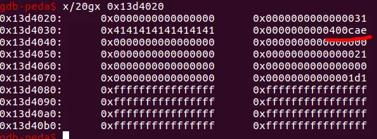 우리가 목표로 하는것은 answer_me 함수포인터가 담겨있는 부분은 win주소로 변경하는 것이다. 현재 chat 변수에는 우리가 아까 첫번째 반복문에서 free 시켰던 청크 주소가 그대로 들어가 있기 때문에, 3번째 반복에서 answer_me 함수를 호출할때 동일한 위치를 참조하여 호출할 것이다.