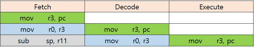 위 3단계는 기본이 되는 단계로, ARM7의 CPU에서 구성된다. ARM9는 5단계, ARM11은 8단계, CortexA8은 13단계라고 한다.