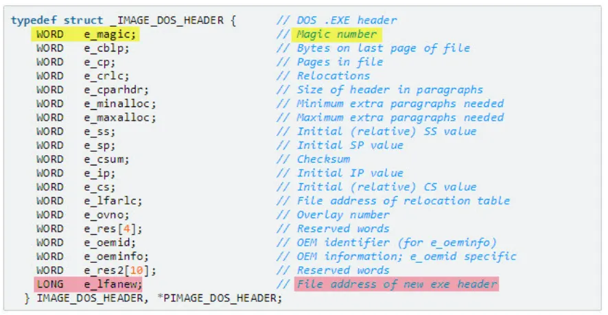즉 IMAGE_DOS_HEADER는 DOS EXE Header를 확장신킨 것이라고 보면 된다.