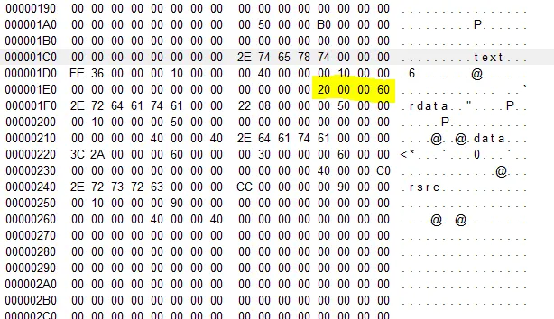 IMAGE_SCN_MEM_EXECUTE : 20000000