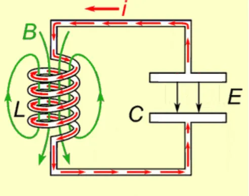 우리가 흔히 스카이 라이프 접시 모양의 안테나의 원리가 위 그림으로 생각하면 된다. 커패시터 부분을 좌우로 벌려서 전기장을 크게 만들고 이에 수직 방향의 자기장이 발생한다. 이와 반대로 코일에 생성되는 유도전류를 이용하여 긴 막대기 형태의 안테나를 이용해 전자기파를 발생시킬 수도 있다.