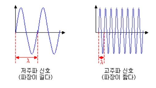 학교 수업시간에 주파수, 파장, 주기 등등 이과생들이라면 많이들 보던 그림일 것이다. RF에서 Frequency가 바로 저 주파수이다. 주파수가 높다는 의미는 정해진 시간동안 파형이 빽빽하게 채워진다는 의미이다.