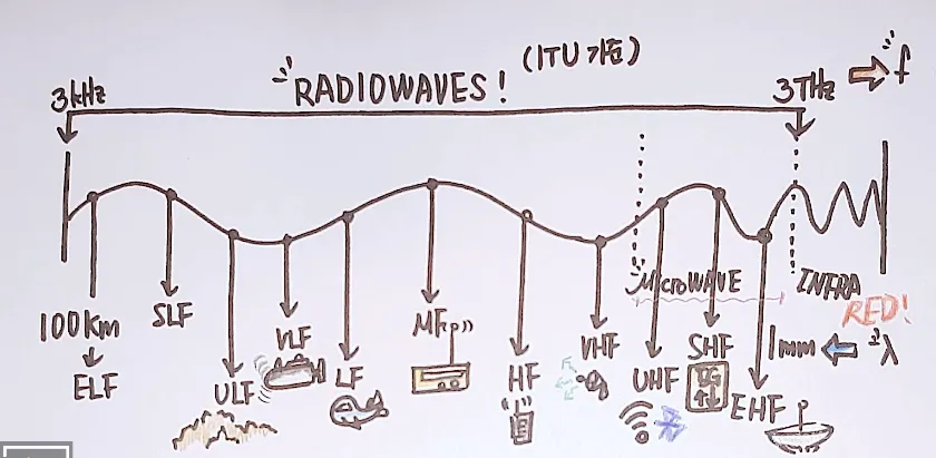 Radio Waves는 통신에 사용되는 모든 대역의 전자기파를 지칭한다. 국제 전기통신 연합 ITU의 전파 규칙에 따르면 Radio Waves는 주파수가 3KHz부터 3THz까지의 모든 전자기파를 의미한다.