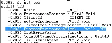 32bit 환경에서 TEB 구조체에 저장된 PEB 주소