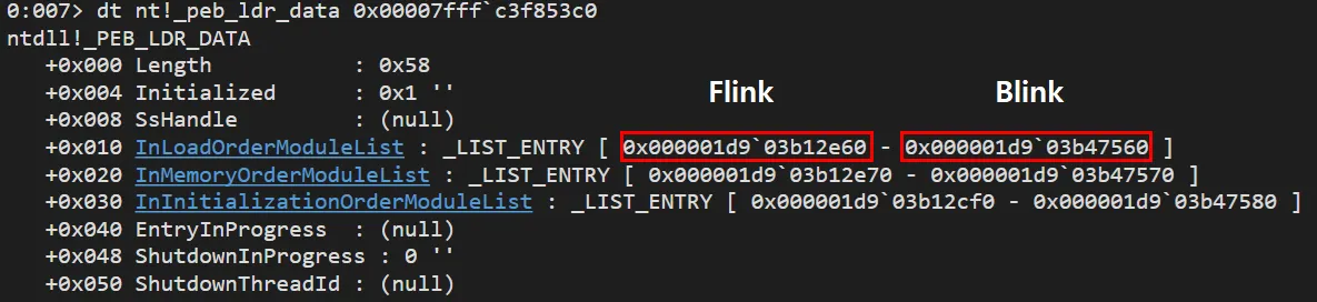 peb_ldr_data 구조체의 InLoadOrderModuleList 의 Flink와 Blink