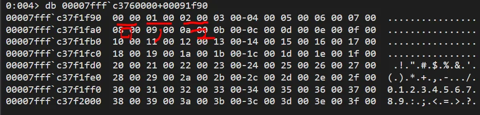 오프셋이 정확히 맞아 떨어졌다. 이를 통해 제대로 값을 가져온 것을 알수있다.