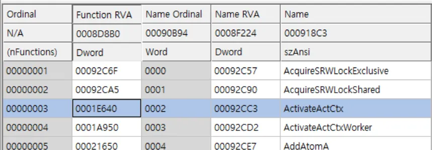 DWORD AddressOfFunctions : 실제 함수의 시작 주소까지의 오프셋 배열