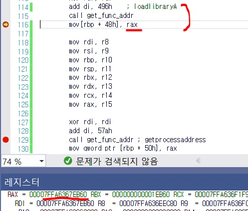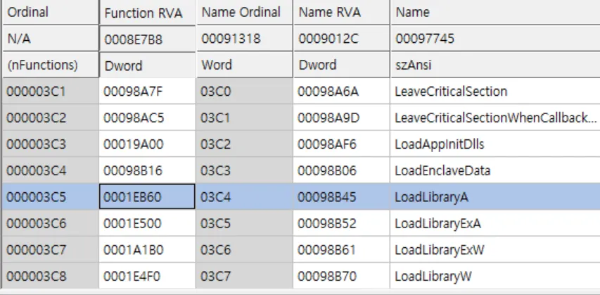 그렇다면 정상적으로 LoadLibraryA 함수가 나오는지 확인해보자.
