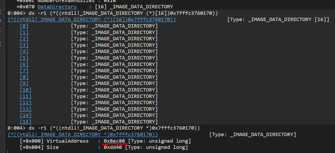 0:004> dt nt!_image_optional_header64 00007fff`c3760000+0xe8+0x18