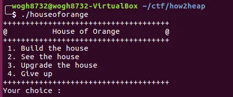 1번으로 집을 짓는거 보니, 여기서 malloc이 진행될 것같다. 그리고 2번으로 출력이 가능하며, 3번으로 수정이 가능할것이다. 4번은 종료이다.