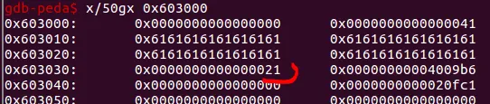 strlen 함수 실행시, 0x603030에 들어있던 0x20 값까지 포함하여 읽기 떄문에 해당 strlen의 반환값은 0x21이 된다. 따라서 다음 edit_name 함수 호출시 0x603030에 들어있는 값을 사이즈로 입력받으므로 한바이트를 더 변경 가능하고, 다음 edit_name 호출시 입력받을 수 있는 사이즈를 조절이 가능하다.