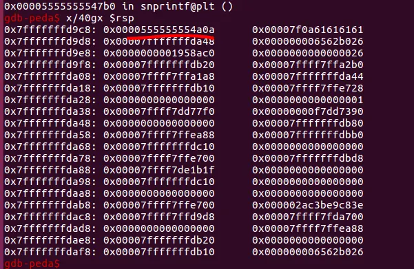 snprintf가 호출되기 직전의 스택 상황은 다음과 같다